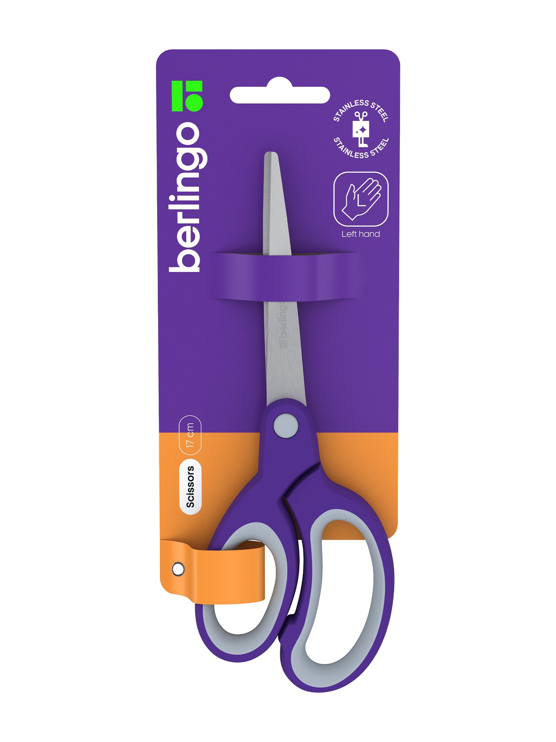 Ножницы для левшей Berlingo 17см, эргономичные ручки, мягкие вставки европодвес