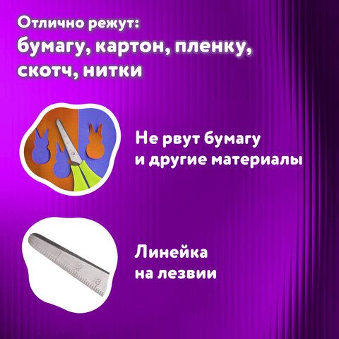 Ножницы ЮНЛАНДИЯ, 135 мм, с линейкой и футляром для лезвий, салатовые, блистер, 237109