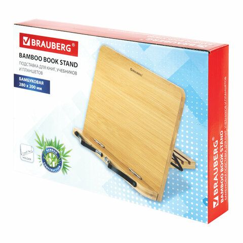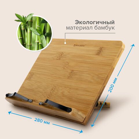 Подставка для книг и планшетов бамбуковая BRAUBERG, 28х20 см, регулируемый угол, 237895