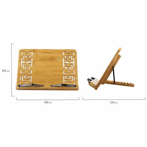 Подставка для книг и планшетов бамбуковая резная BRAUBERG, 28х20 см, регулируемый угол, 237897