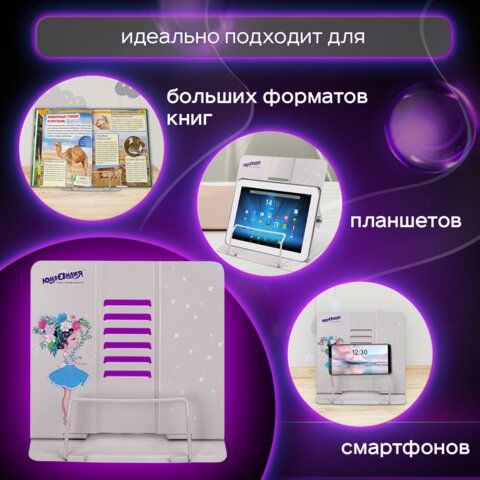 Подставка для книг и учебников ЮНЛАНДИЯ "Flower girl", регулируемый угол наклона, металл, 237578