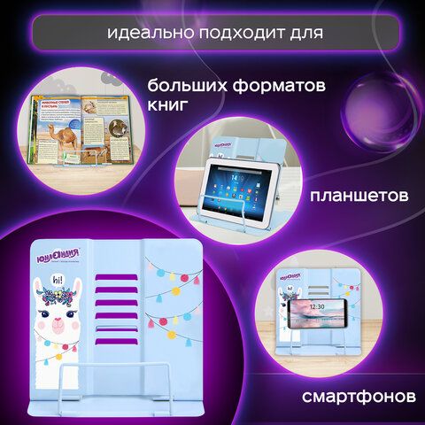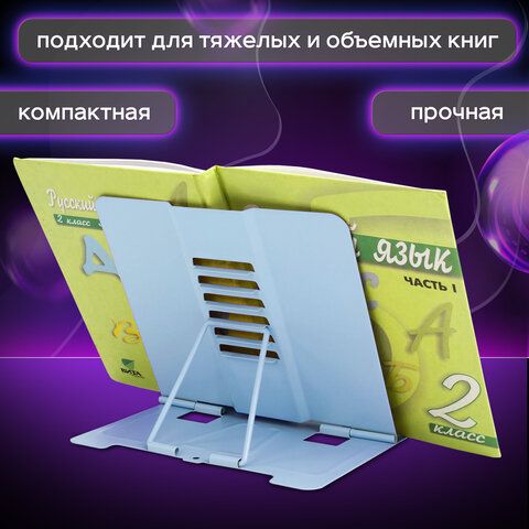 Подставка для книг и учебников ЮНЛАНДИЯ "Lama", регулируемый угол наклона, металл, 237576