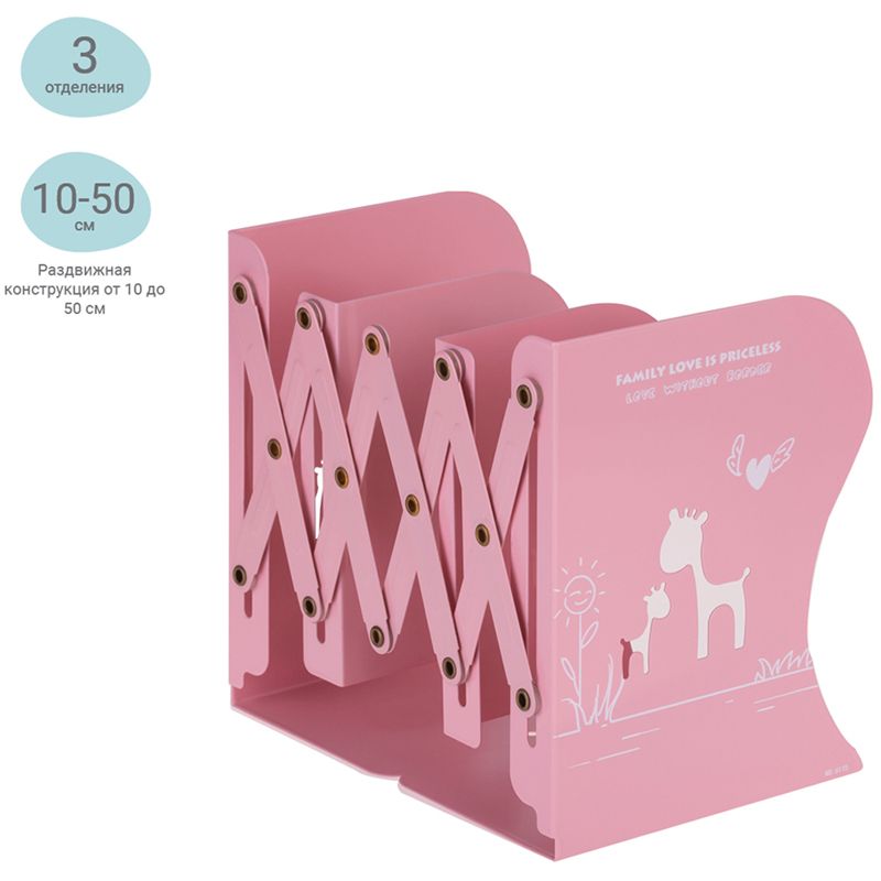 Подставка для книг MESHU, 3 отделения, раздвижная, розовая