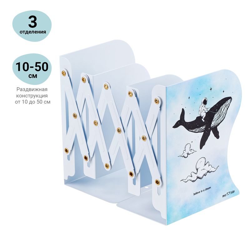 Подставка для книг MESHU "Space Whale", 3 отделения, раздвижная