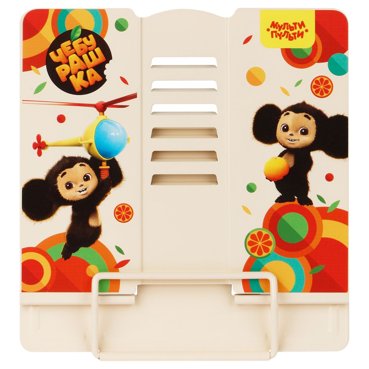 Подставка для книг Мульти-Пульти "Чебурашка", регулируемый угол наклона, металлическая, с рисунком на корпусе