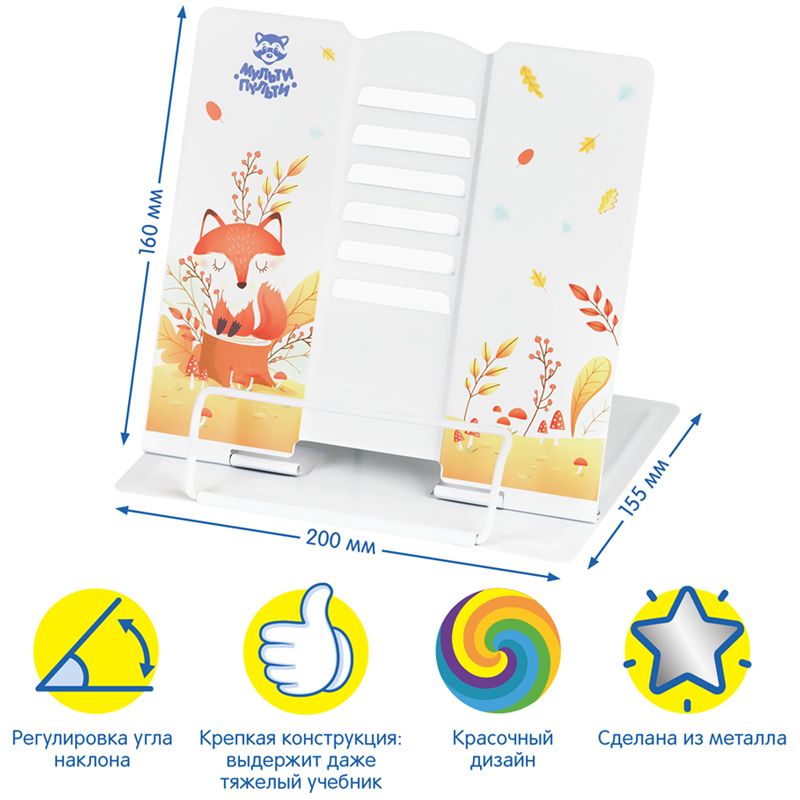 Подставка для книг Мульти-Пульти "Лисенок", регулируемый угол наклона, металлическая, с рисунком на корпусе