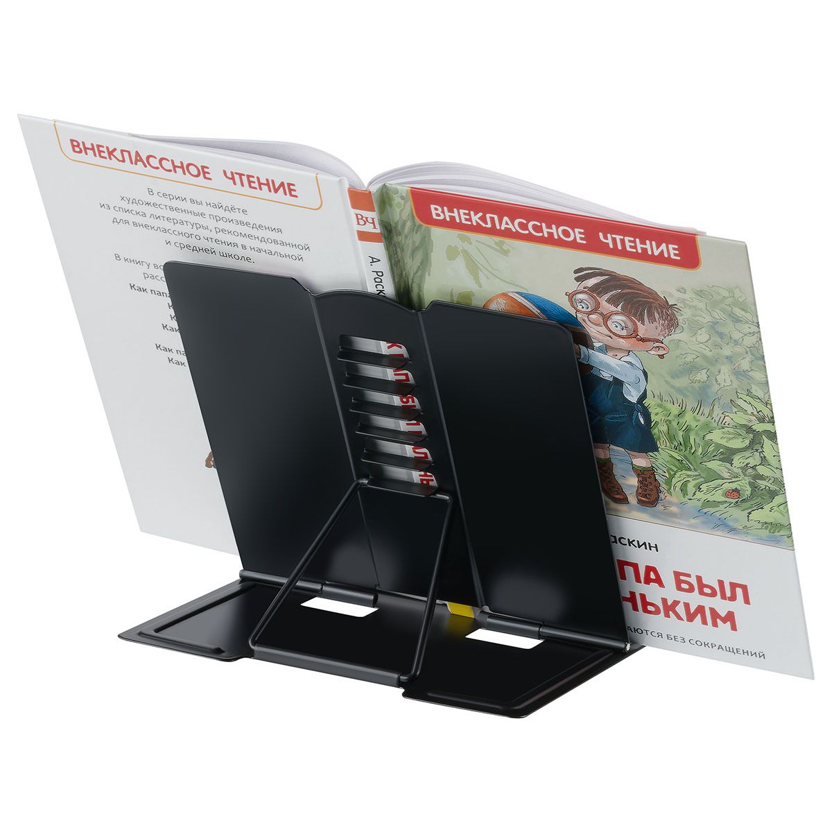 Подставка для книг СТАММ, металлическая, мини-формат, регулируемый угол наклона, черная