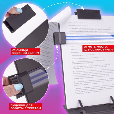 Подставка для книг, учебников BRAUBERG, большая, регулируемый наклон, металл/пластик, черная, 237447