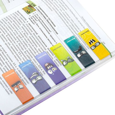 - Стикеры-закладки — компактные, подходят для пометок и деления текста на части.