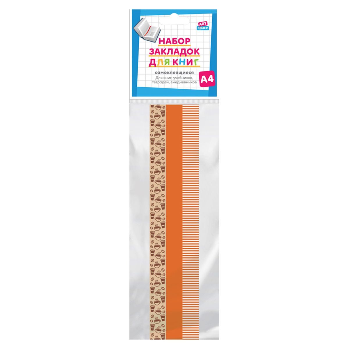 Набор закладок для книг формата А4 (ляссе с клеевым краем), ArtSpace "Coffee" (3 широкие ленты)