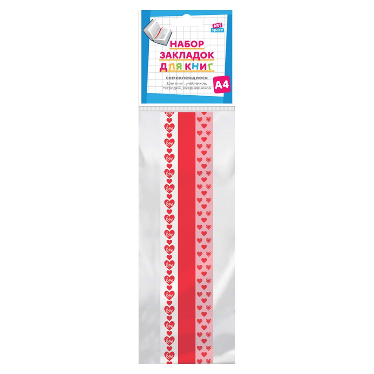Набор закладок для книг формата А4 (ляссе с клеевым краем), ArtSpace "Hearts" (3 широкие ленты)