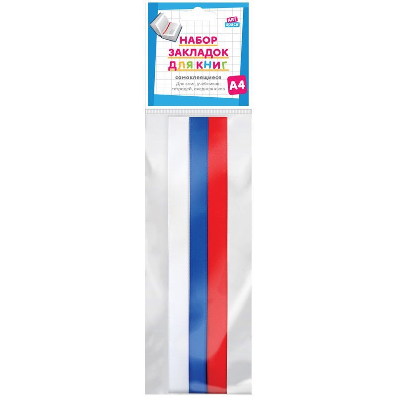 Набор закладок для книг формата А4 (ляссе с клеевым краем), ArtSpace "Триколор" (3 широкие ленты)