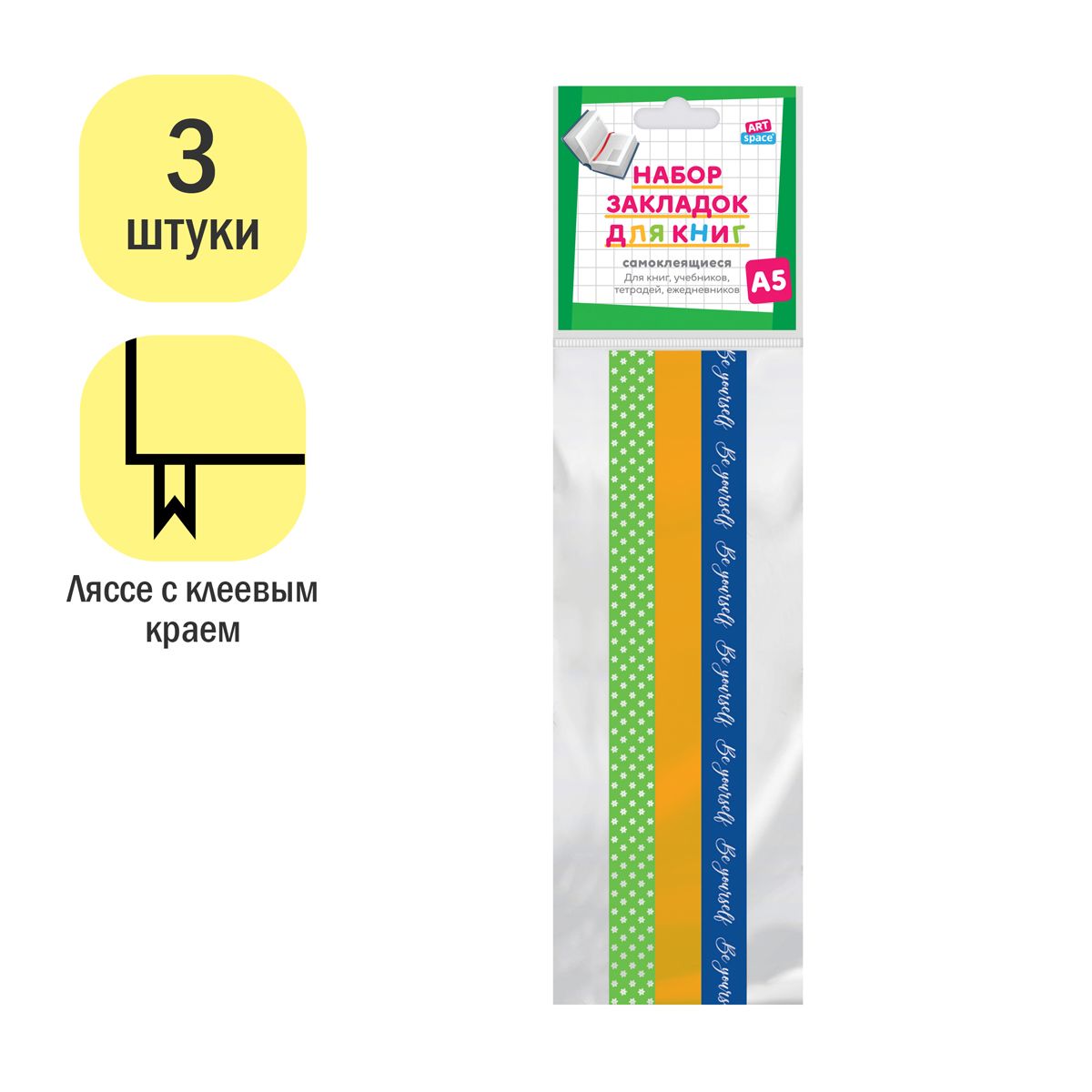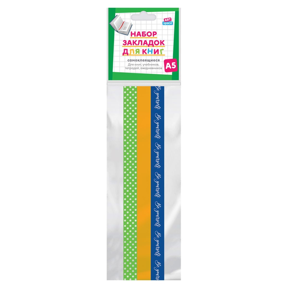 Набор закладок для книг формата А5 (ляссе с клеевым краем), ArtSpace "Be yourself" (3 широкие ленты)