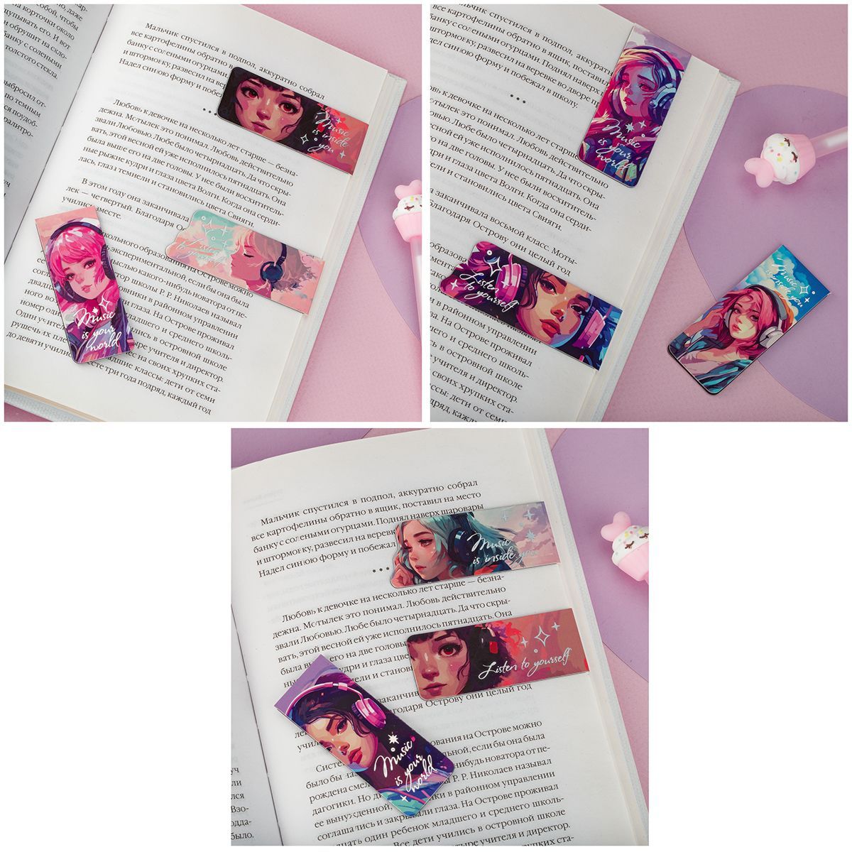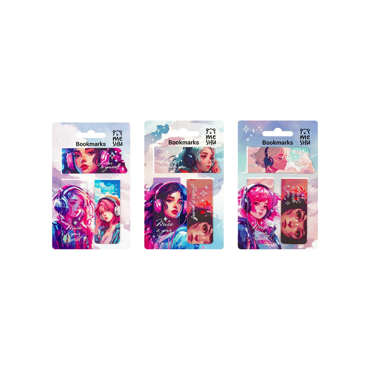 Закладки магнитные для книг, 3шт., MESHU "Anime", софт-тач, фольга, ассорти