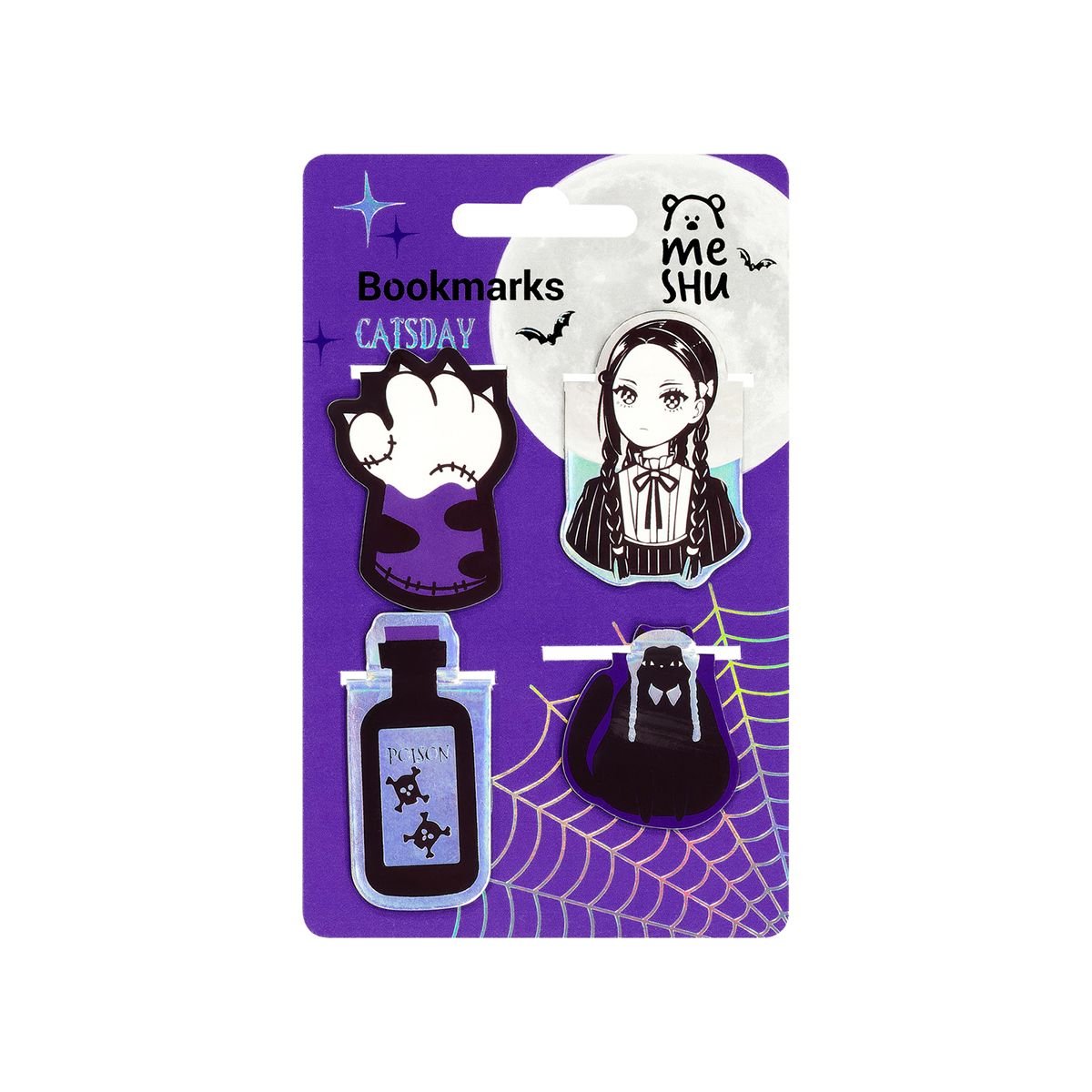 Закладки магнитные для книг, 4шт., MESHU "Catsday", матовая ламинация, фольга