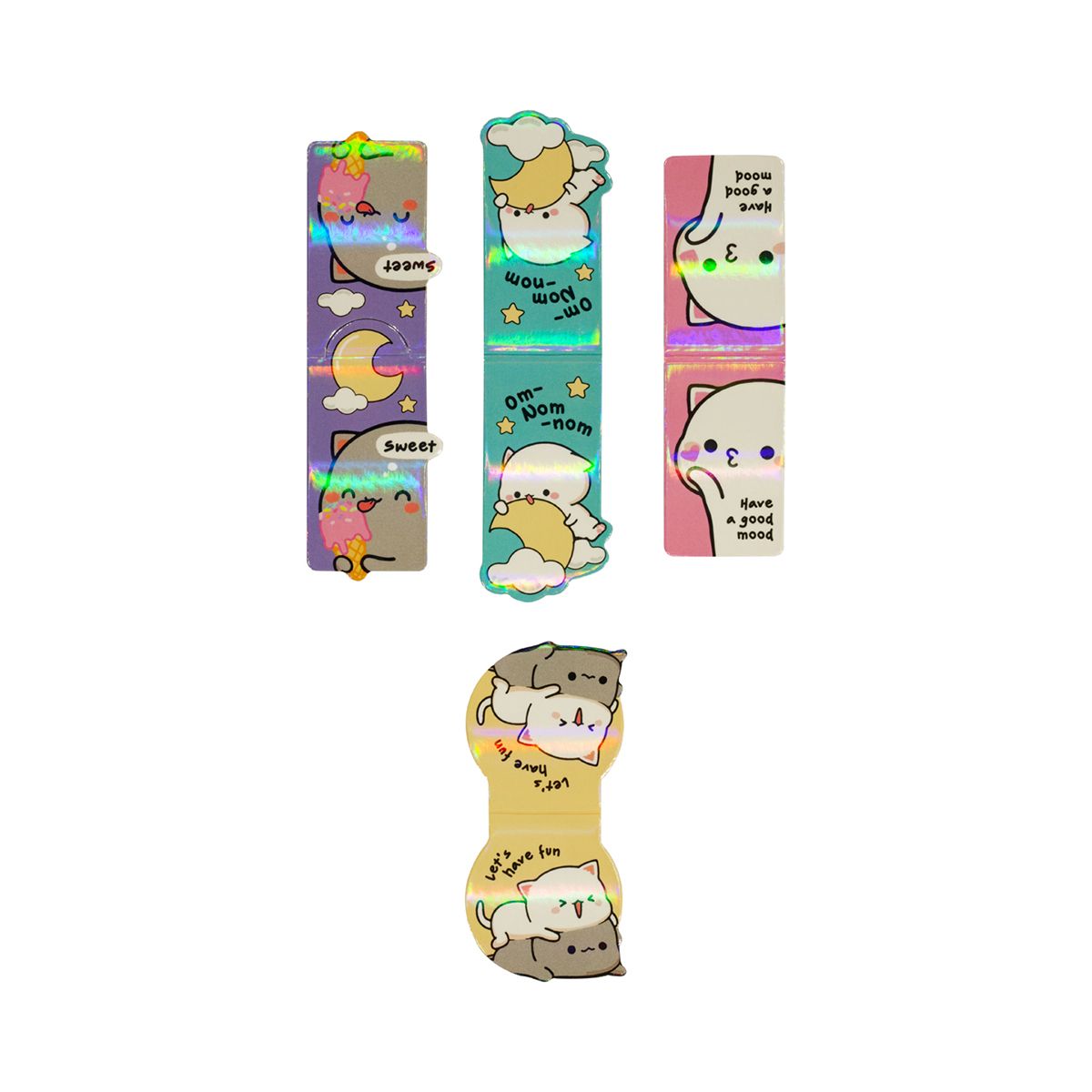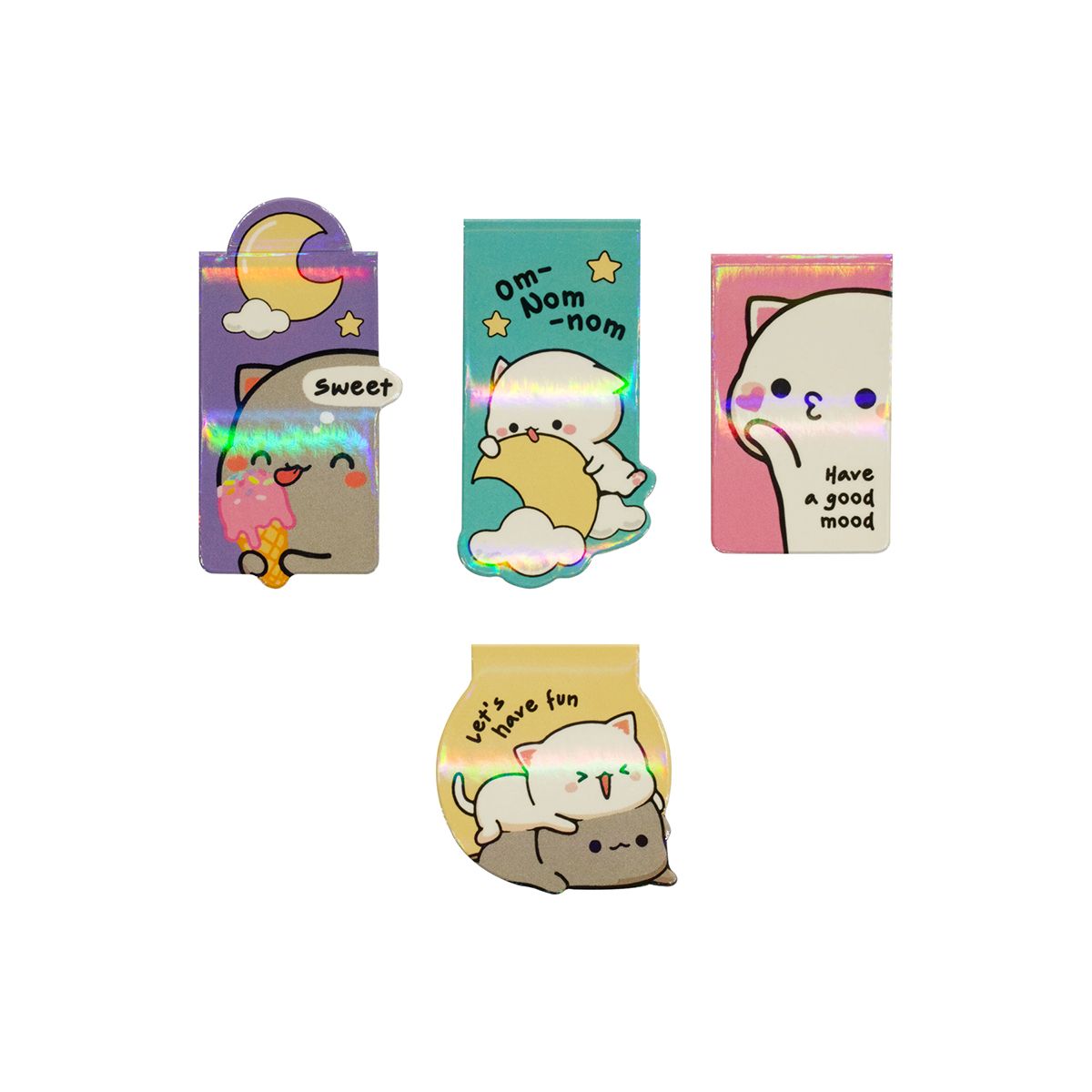 Закладки магнитные для книг, 4шт., MESHU "Cute kittens", ламинация с блестками