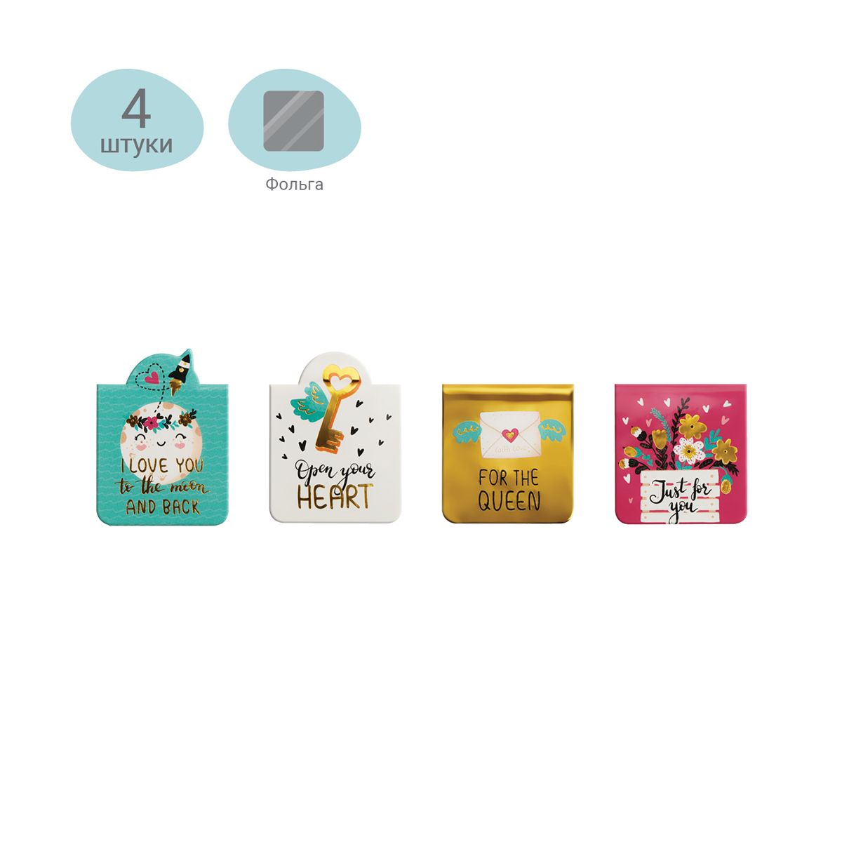 Закладки магнитные для книг, 4шт., MESHU "Key to heart"