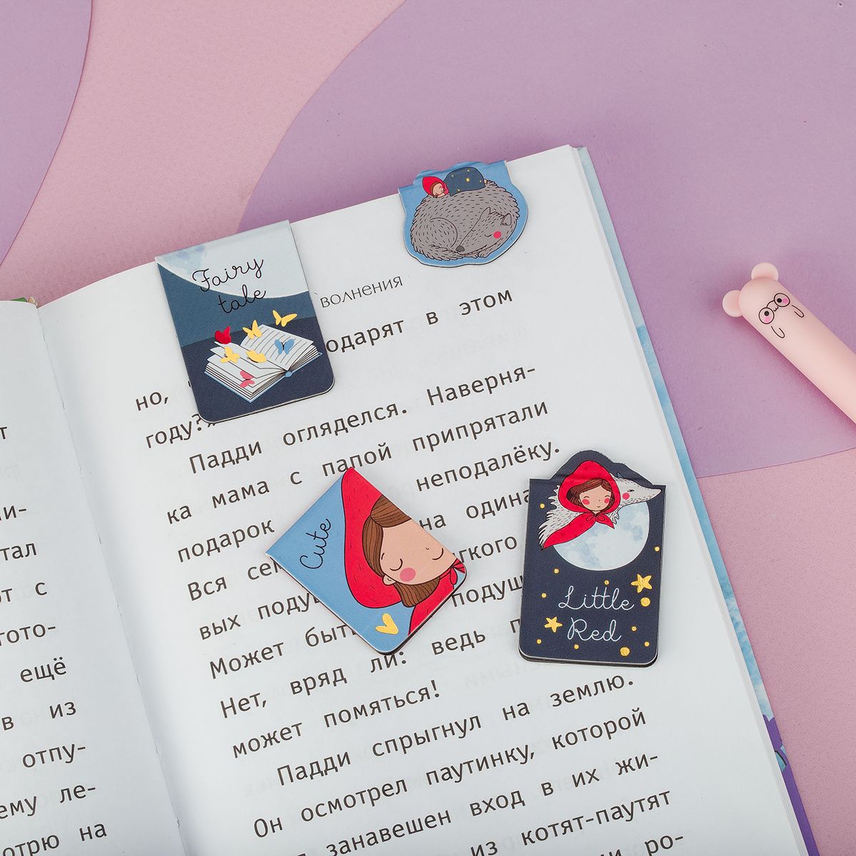 Закладки магнитные для книг, 4шт., MESHU "Little red", матовая ламинация, фольга