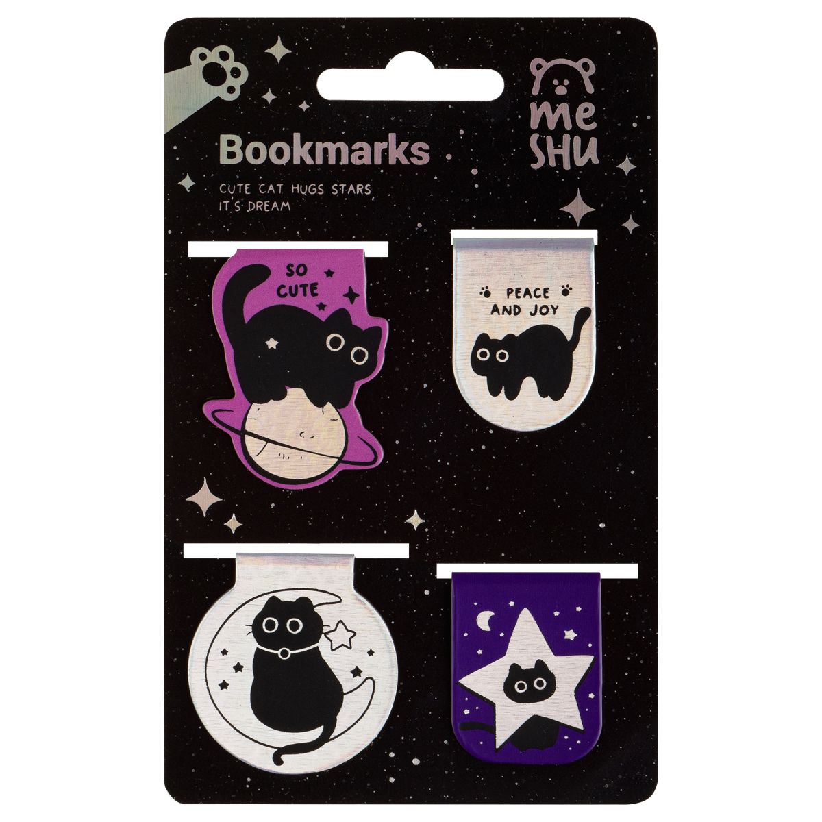 Закладки магнитные для книг, 4шт., MESHU "Meow Space", голографическая фольга