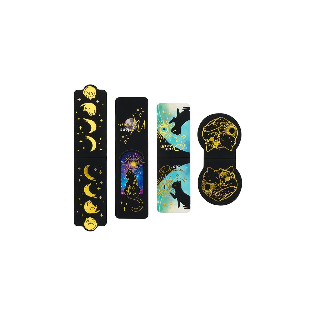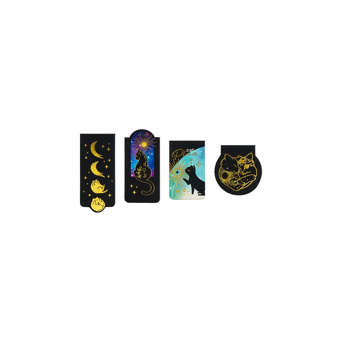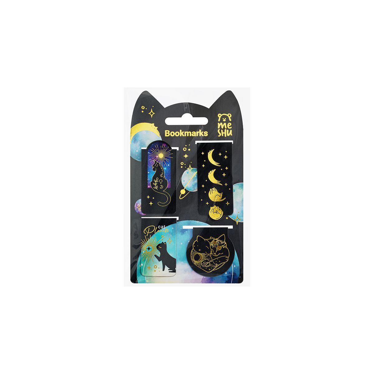 Закладки магнитные для книг, 4шт., MESHU "Moon cat", софт-тач, фольга