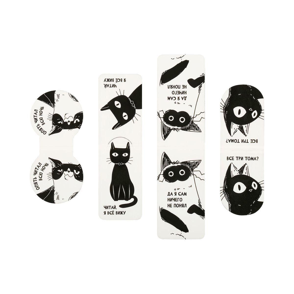 Закладки магнитные для книг, 4шт., MESHU "Начитанный кот", софт-тач
