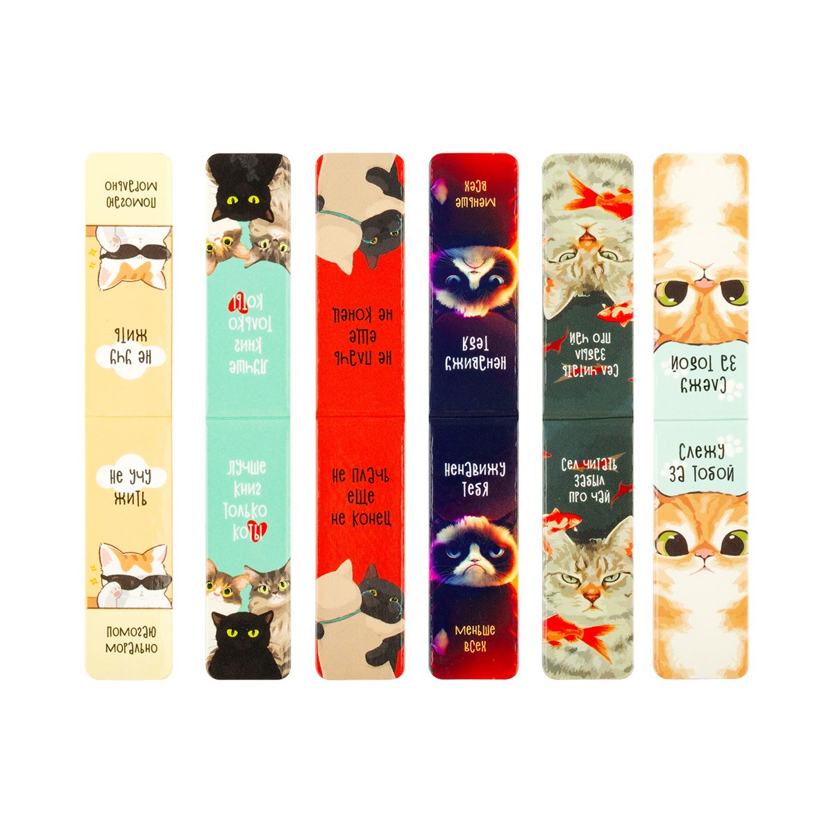 Закладки магнитные для книг, 6шт., MESHU "Котики", глянцевая ламинация
