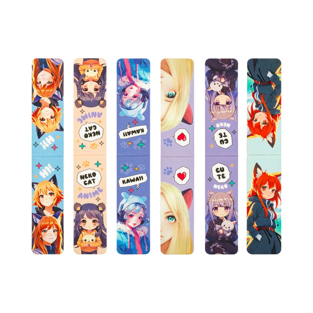 Закладки магнитные для книг, 6шт., MESHU "Neko", глянцевая ламинация