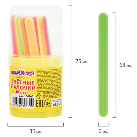 - Количество элементов в наборе — подбирайте по возрасту и учебной программе (от 20 до 100 палочек или больше).