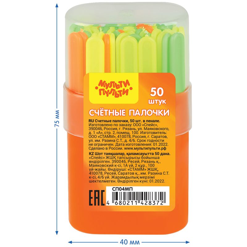 Набор счетных палочек Мульти-Пульти, 50шт. в пластиковом пенале