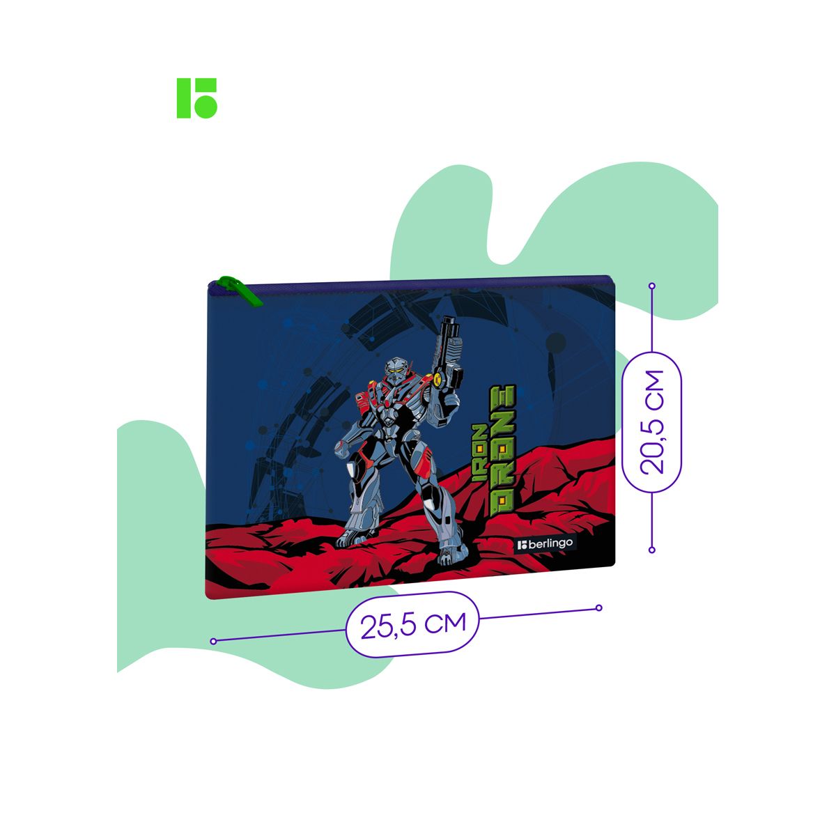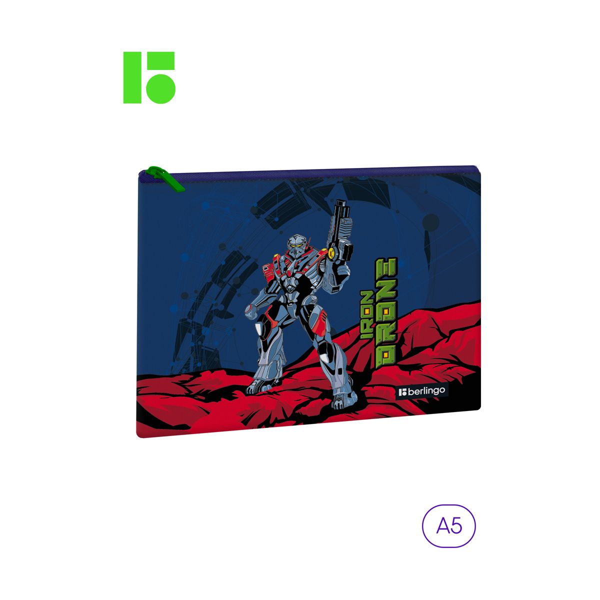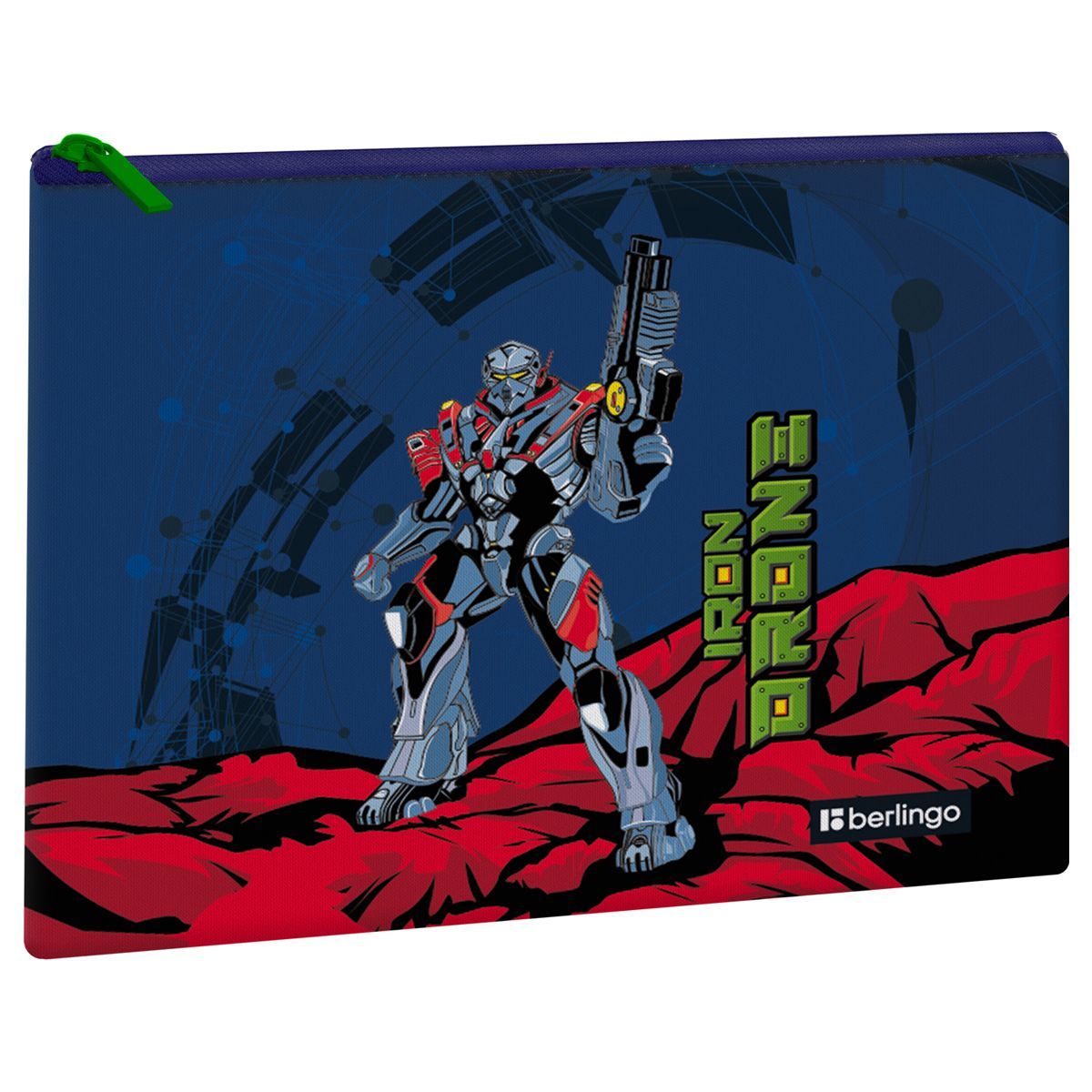 УЦЕНКА - Папка текстильная 1 отделение, А5 Berlingo "Iron drone", 255*205мм, полиэстер, на молнии (осн 352007)