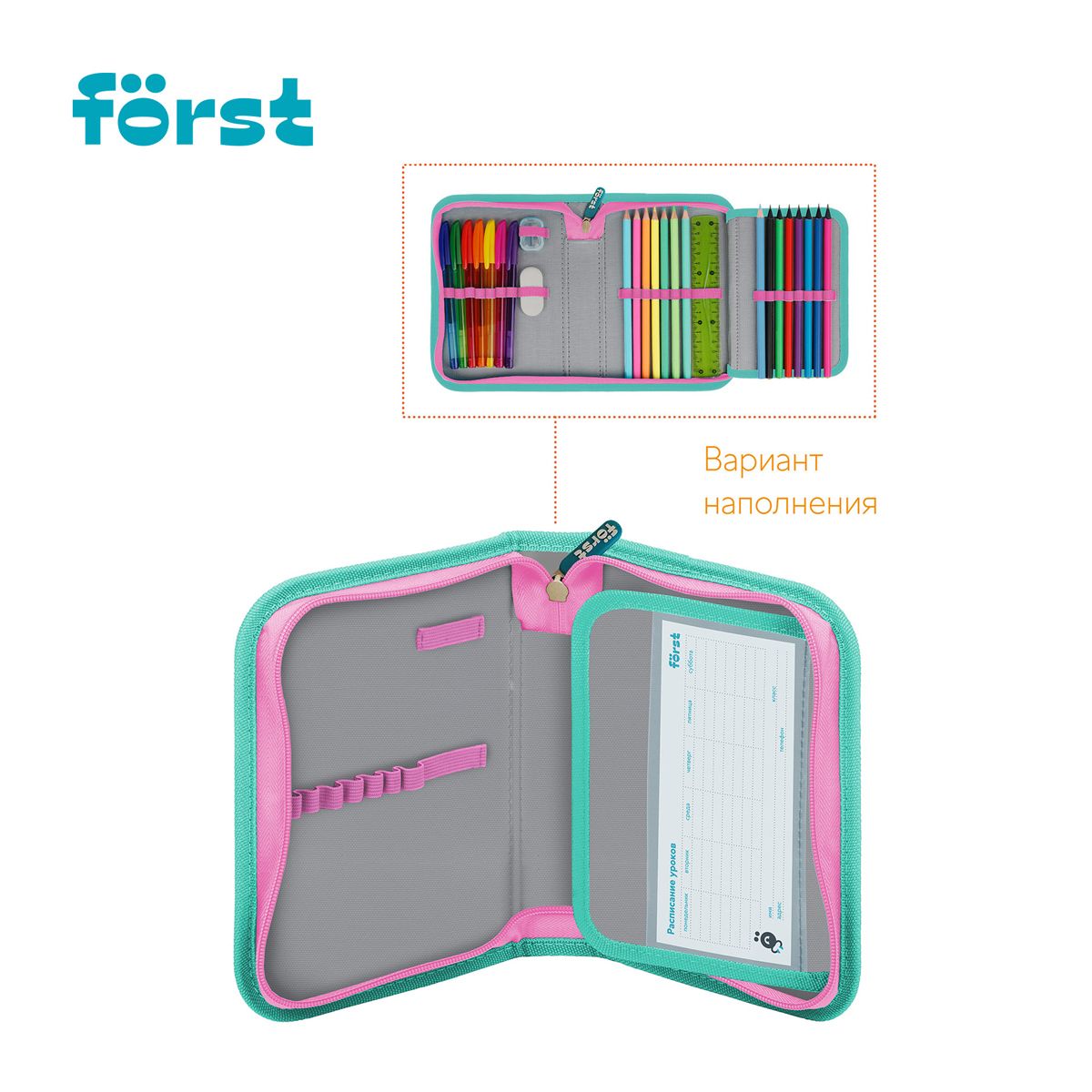 Каркасный пенал Först помогает школьнику хранить канцелярские принадлежности в одном месте. Изделие размером 200*140*40 мм не занимает много места в рюкзаке. В одно отделение помещается 25 предметов. За счёт креплений-резиночек для канцтоваров внутри пенала легко поддерживать порядок. Одна откидная планка увеличивает вместимость изделия и позволяет всегда держать расписание уроков перед глазами. Благодаря крупному резиновому бегунку ребёнку удобно открывать пенал на молнии.