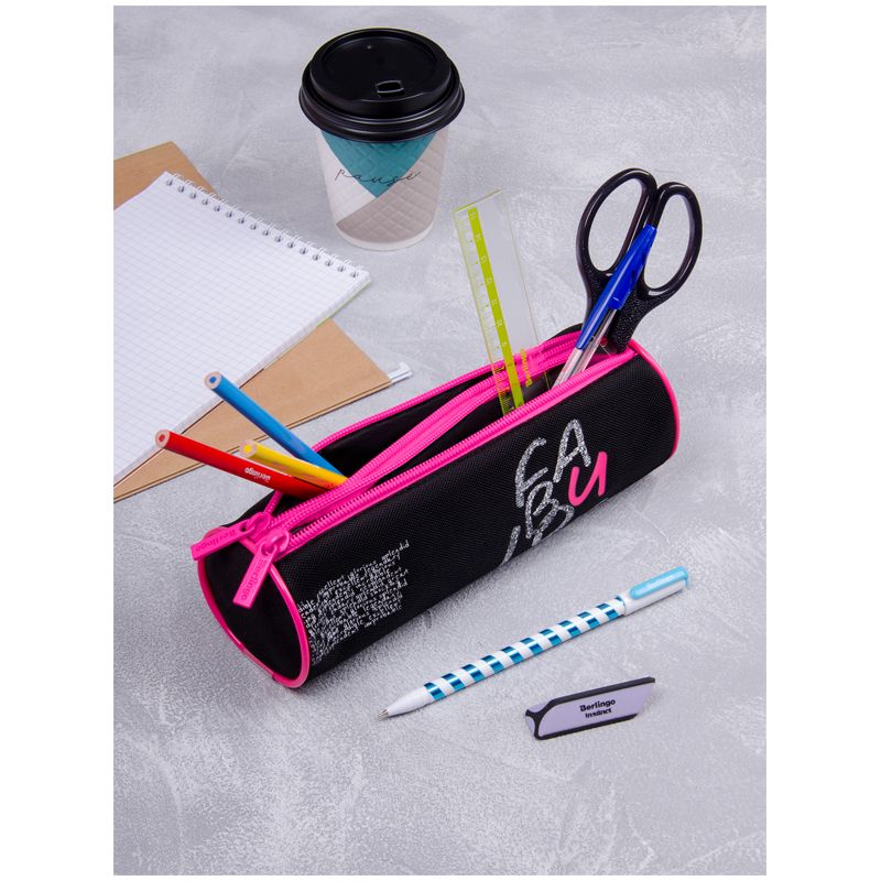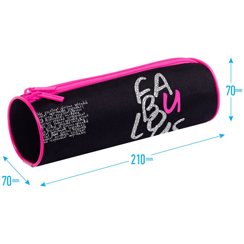 Пенал-тубус школьный мягкий Berlingo Fabulous размера 210*70 мм имеет два отделения, между которыми есть тканевая перегородка. Материал лицевой и внутренней поверхности – полиэстер. Диаметр пенала – 7 см. Чёрный пенал с яркой розовой молнией и оригинальными надписями непременно понравится девочкам. Поставляется без наполнения. Индивидуальная упаковка в пакет.
