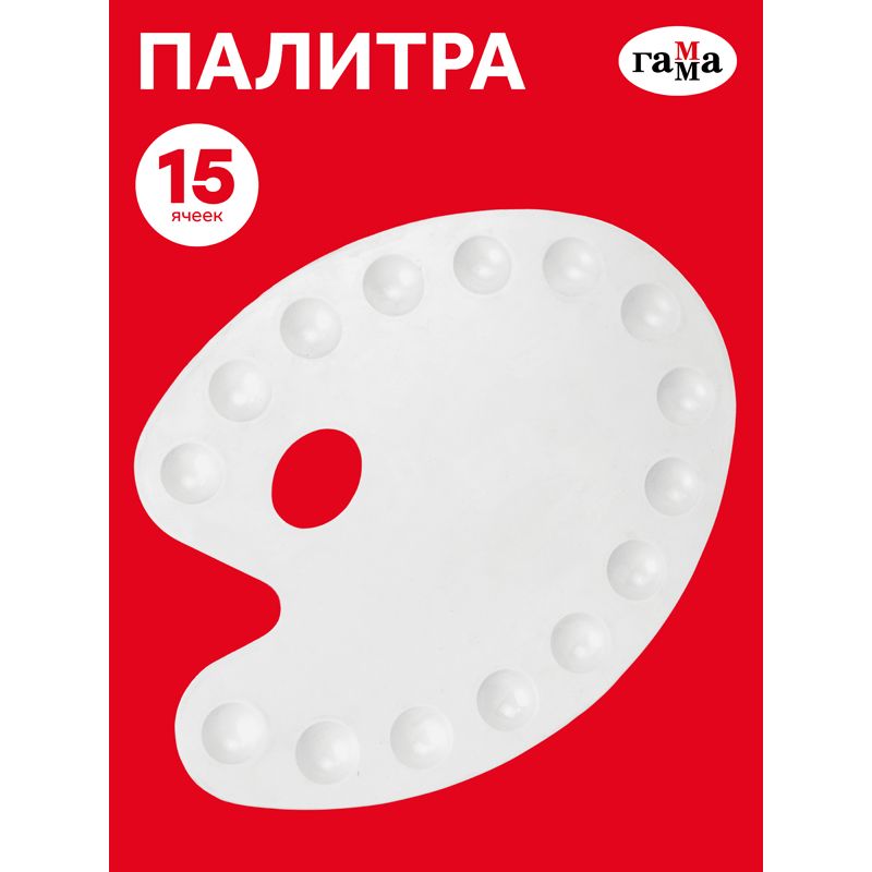 Палитра Гамма, большая, овальная, 15 ячеек, белая, пластик
