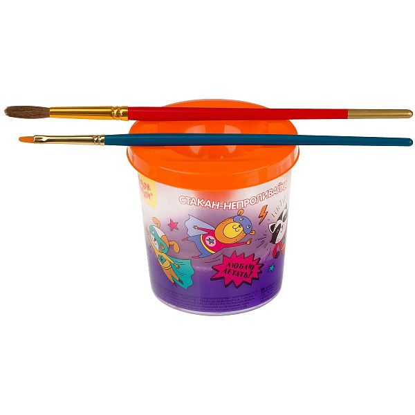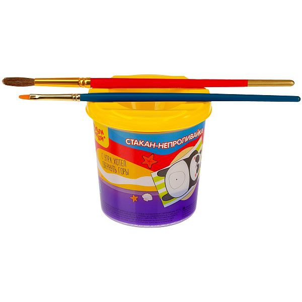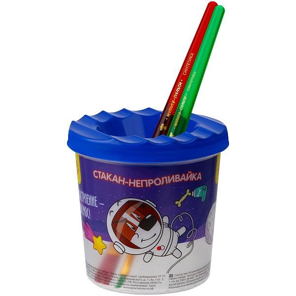 - Акварель и гуашь — стаканы с меткой безопасного уровня воды и желобками для кистей.