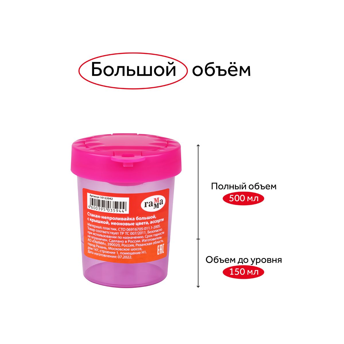 • Объём: полный – 500 мл, до уровня – 150 мл;