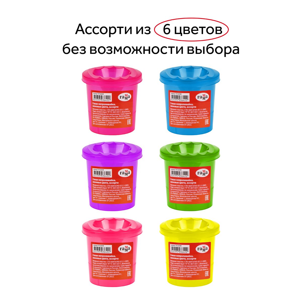 Стакан-непроливайка Гамма, неоновые цвета, ассорти
