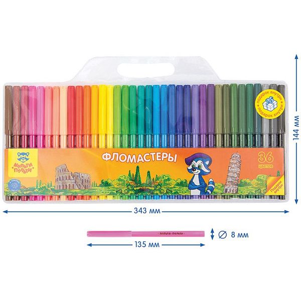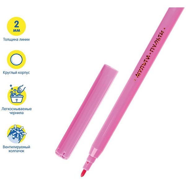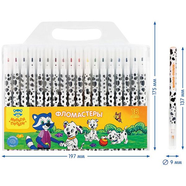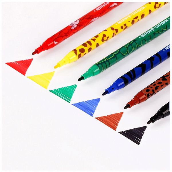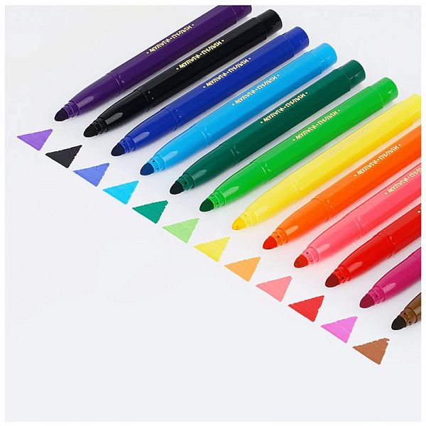 • Фломастеры с тонким и толстым стержнем — для разных техник и удобства детей любого возраста.