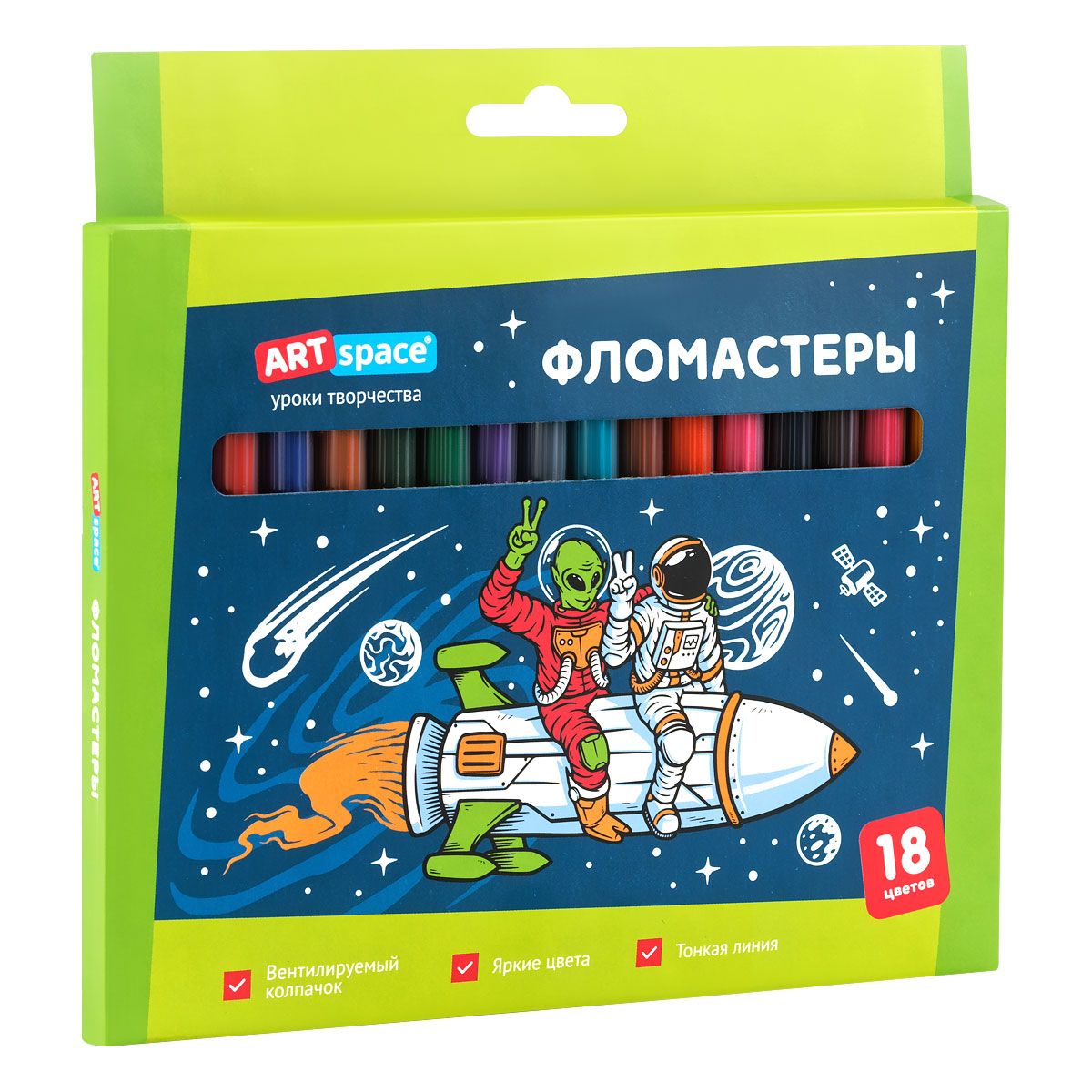 Фломастеры ArtSpace "Космос", 18цв., картон, смываемые, европодвес