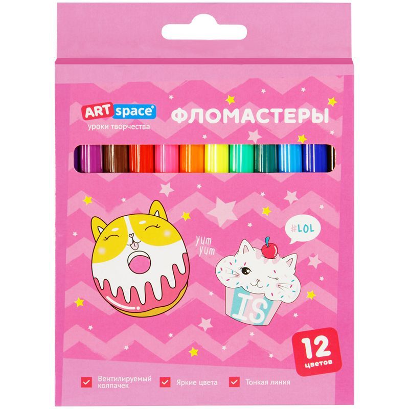 Фломастеры ArtSpace "Кот-сластена", 12цв., смываемые, картон, европодвес