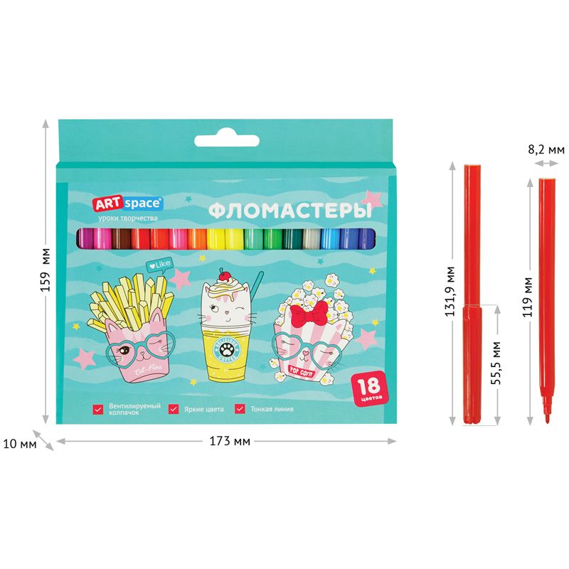 Фломастеры ArtSpace "Кот-сластена", 18цв., смываемые, картон, европодвес