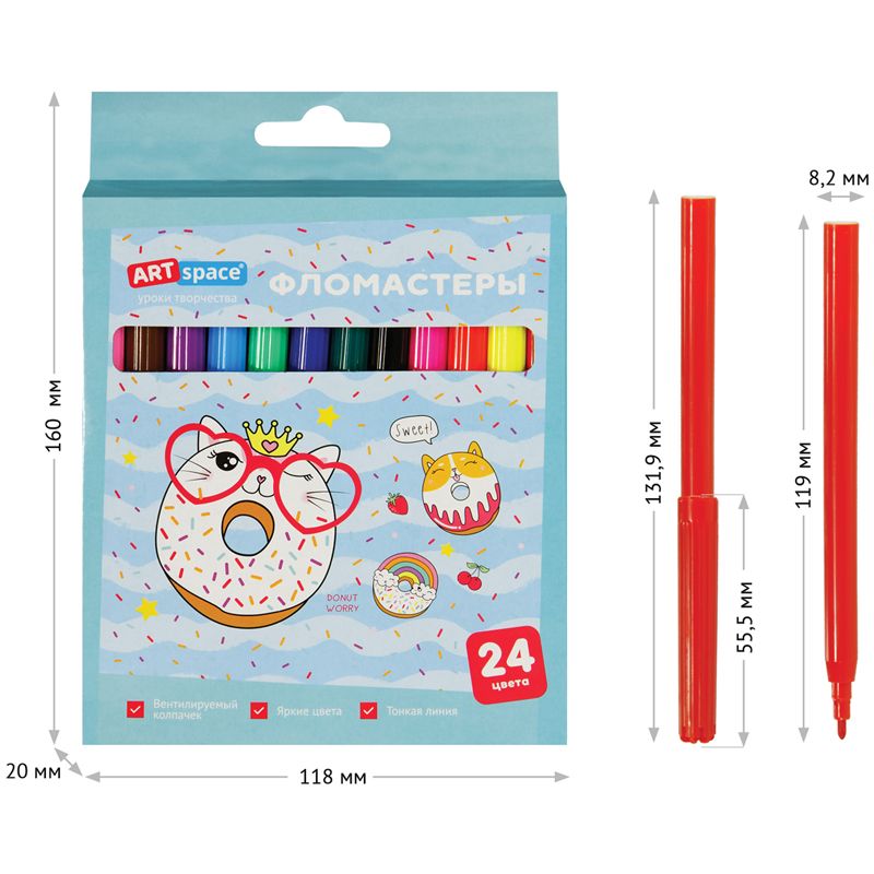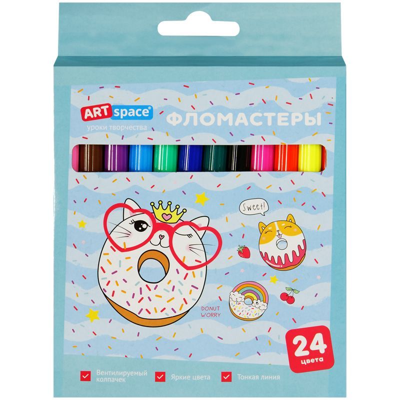 Фломастеры ArtSpace "Кот-сластена", 24цв., смываемые, картон, европодвес