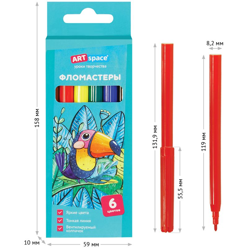 Фломастеры ArtSpace "Милые зверушки", 06цв., смываемые, картон, европодвес
