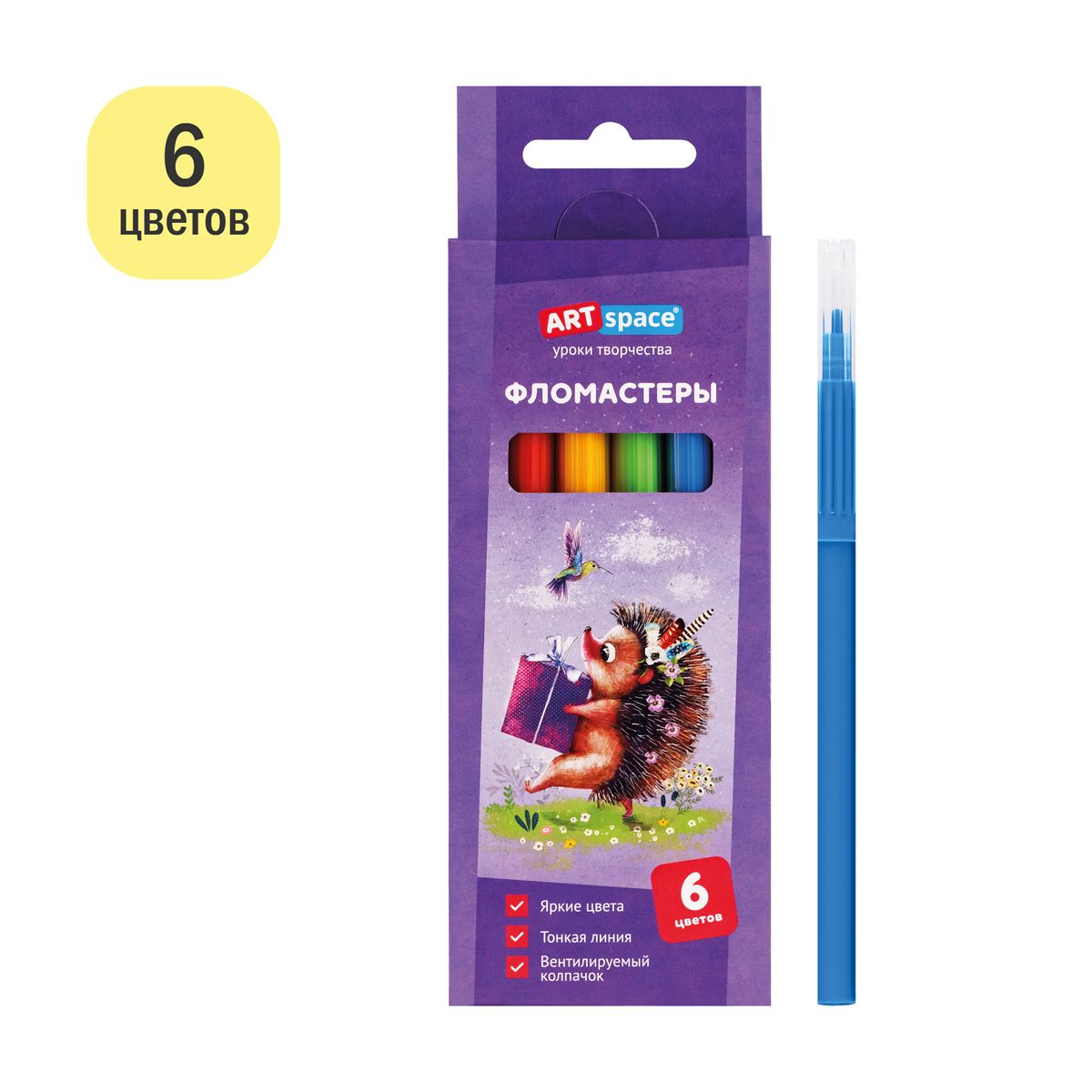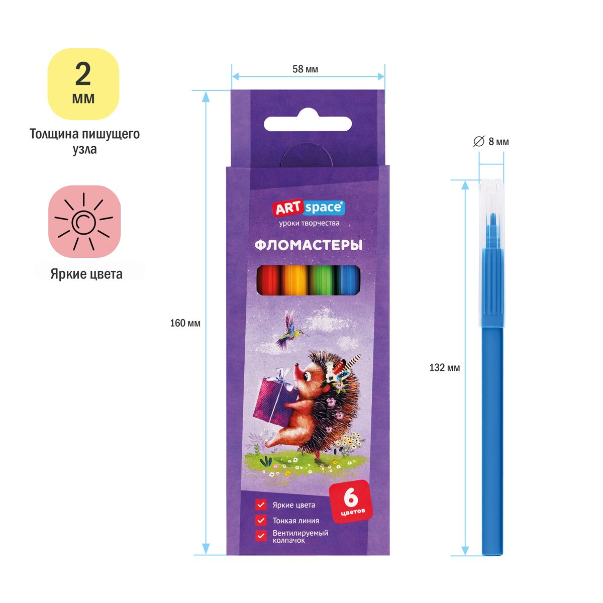 Фломастеры ArtSpace "Рисунки. Lovely animals", 06цв., смываемые, картон, европодвес