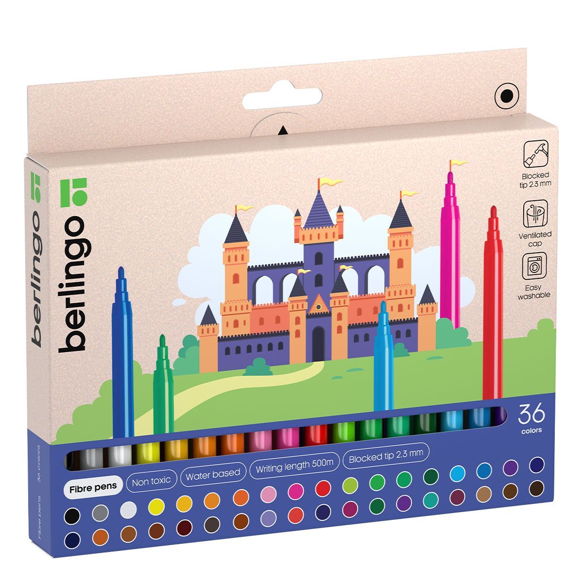 Фломастеры Berlingo "Замки", 36цв., смываемые, картон, европодвес