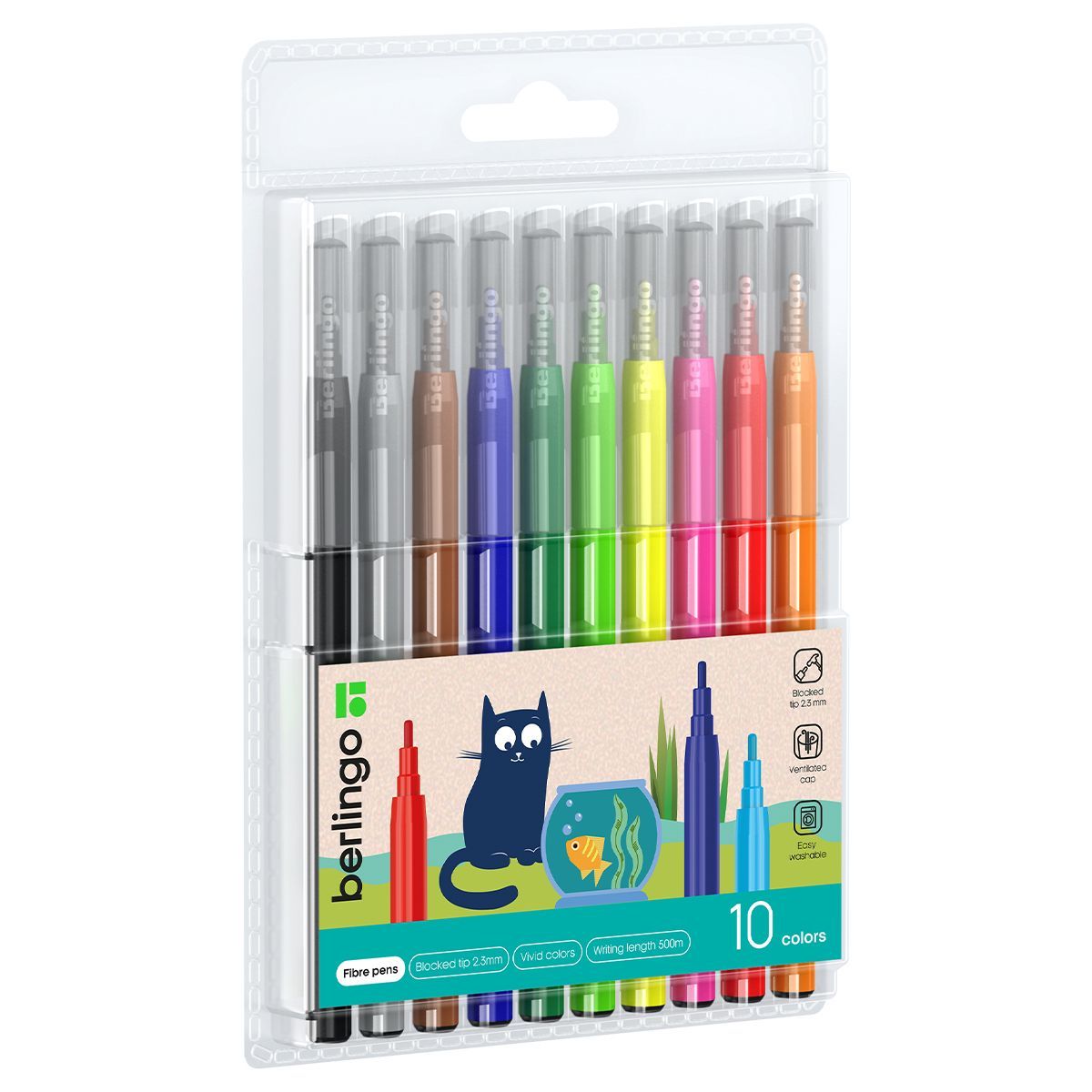 Фломастеры Berlingo "Жил-был кот", 10цв., смываемые, блистер