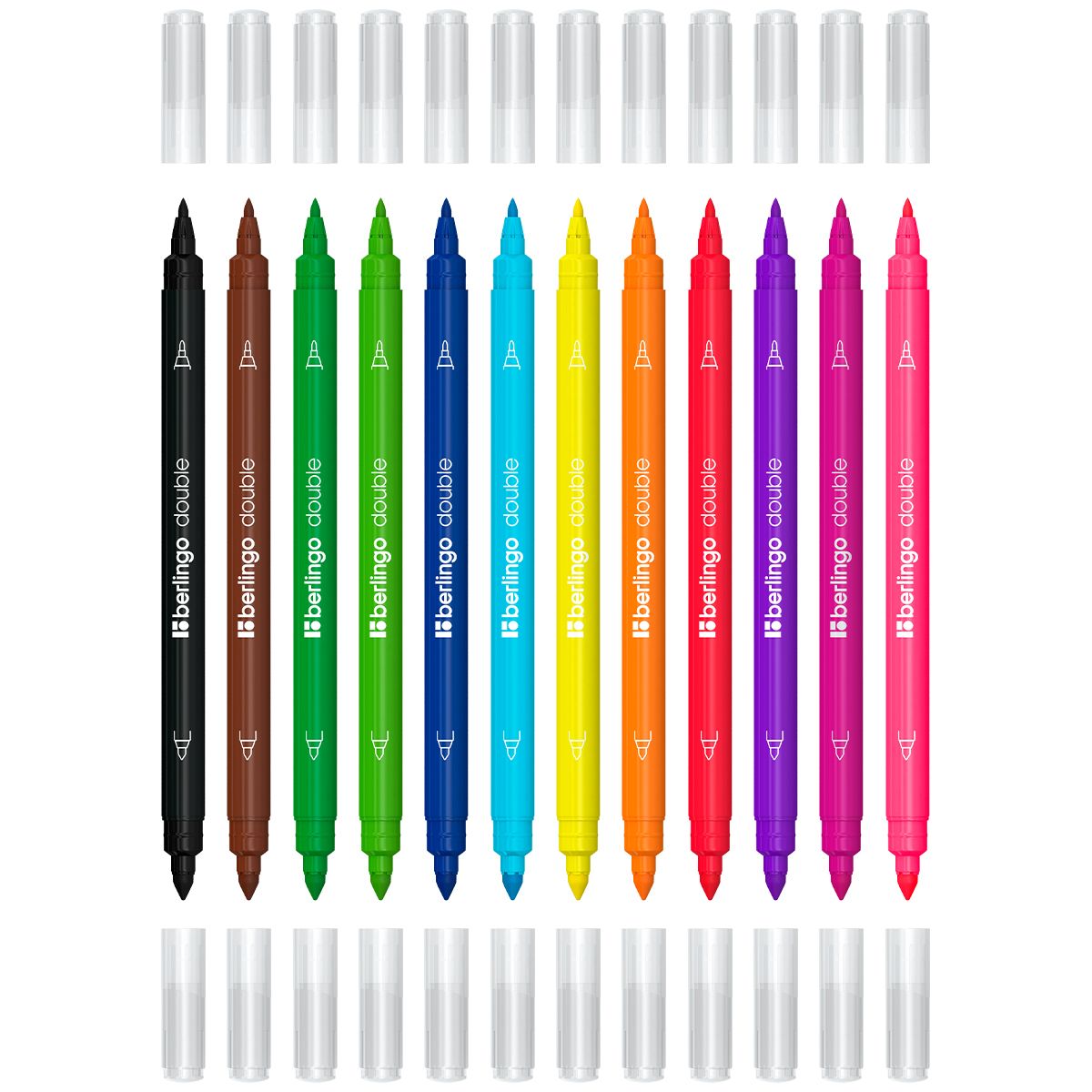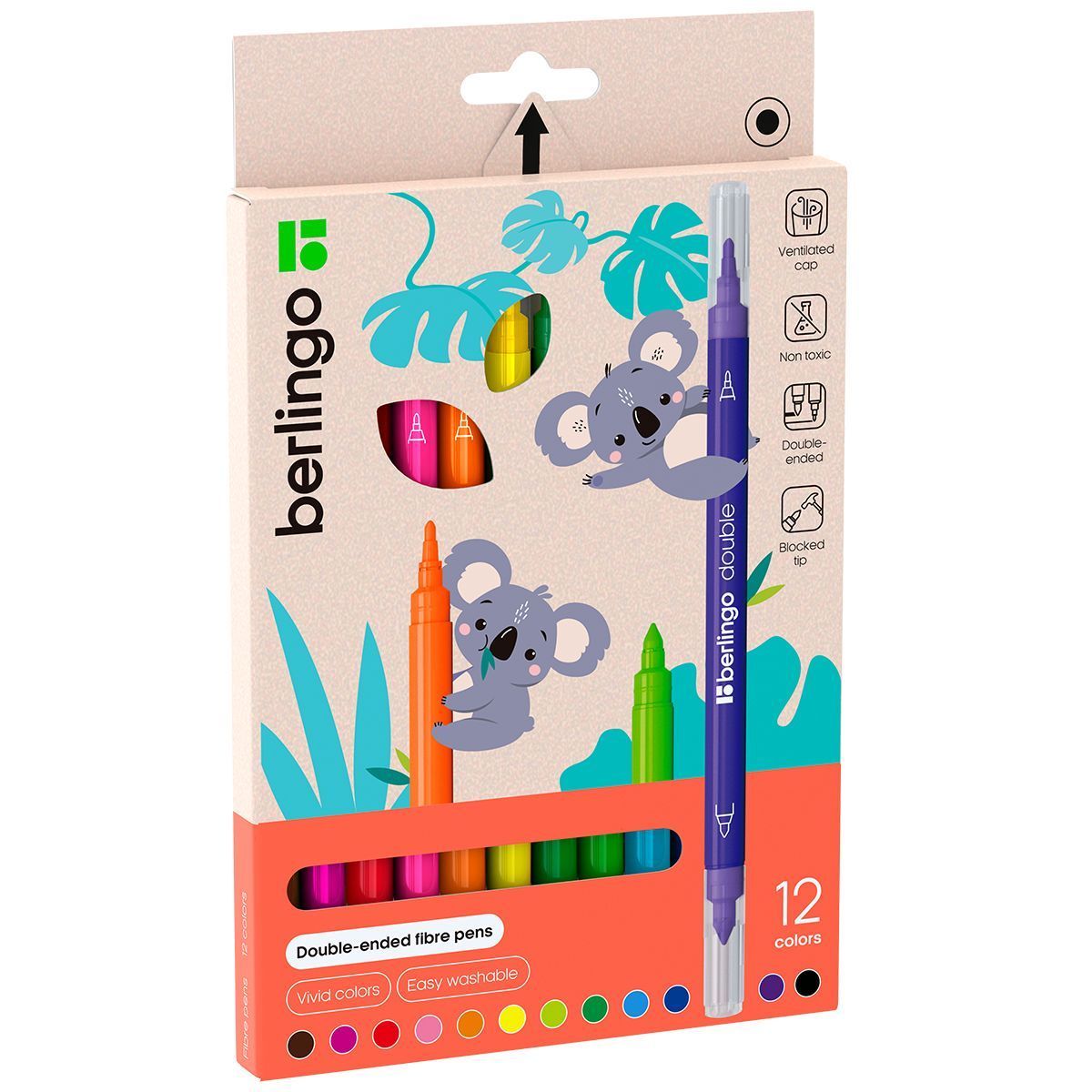 Фломастеры двусторонние Berlingo "Double", 12цв., 12шт., смываемые, картон, европодвес