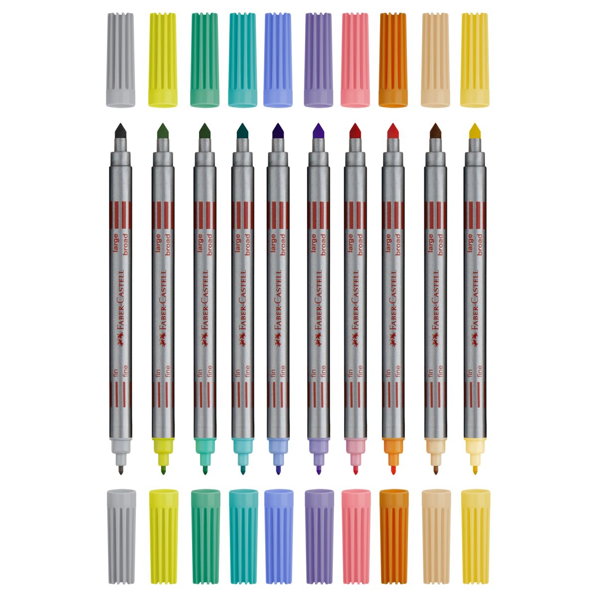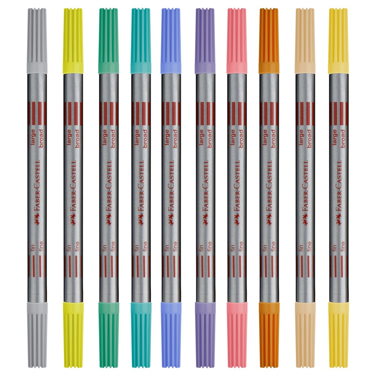 Фломастеры двусторонние Faber-Castell, 10 паст.цв., смываемые, пластик.уп., европодвес