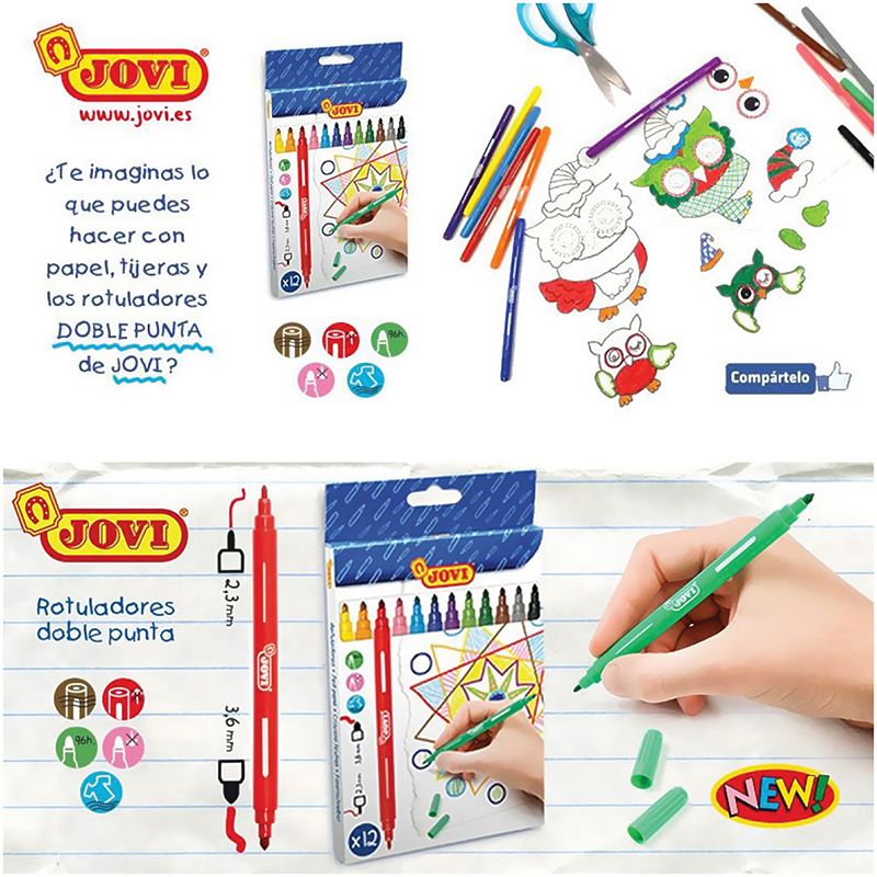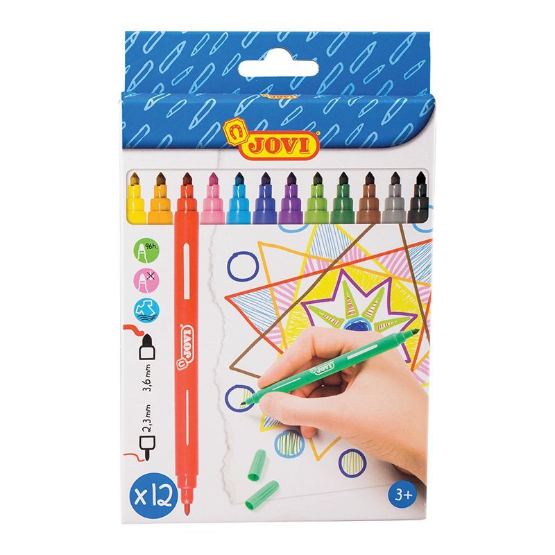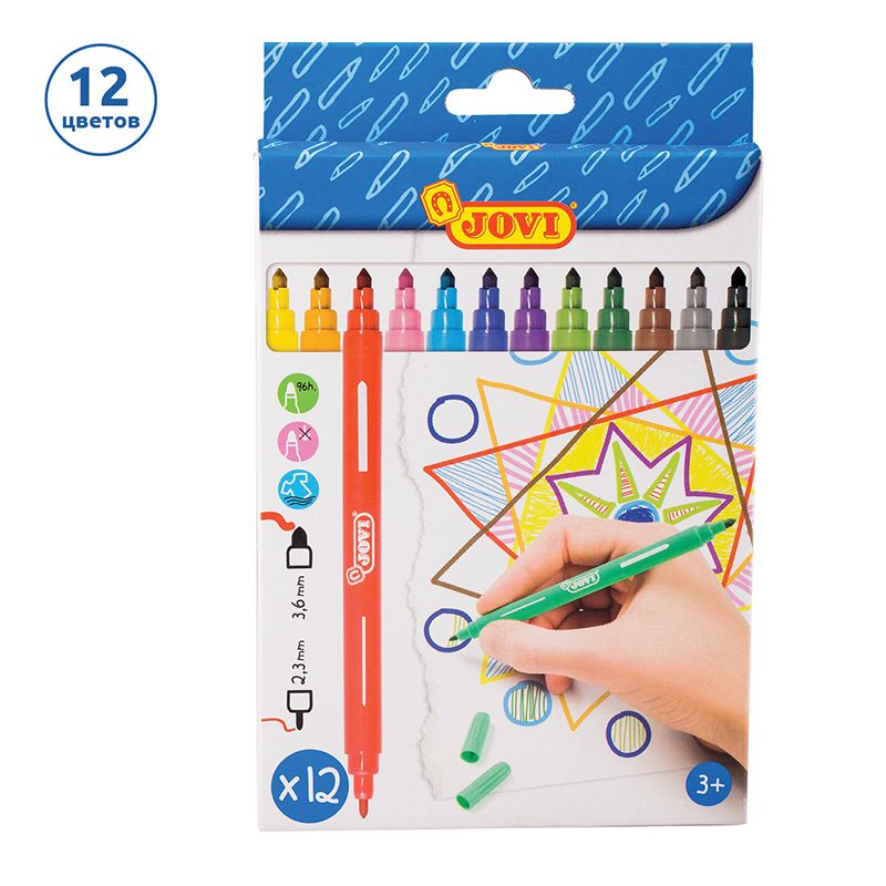 Фломастеры двусторонние JOVI, 12цв., смываемые, картон, европодвес