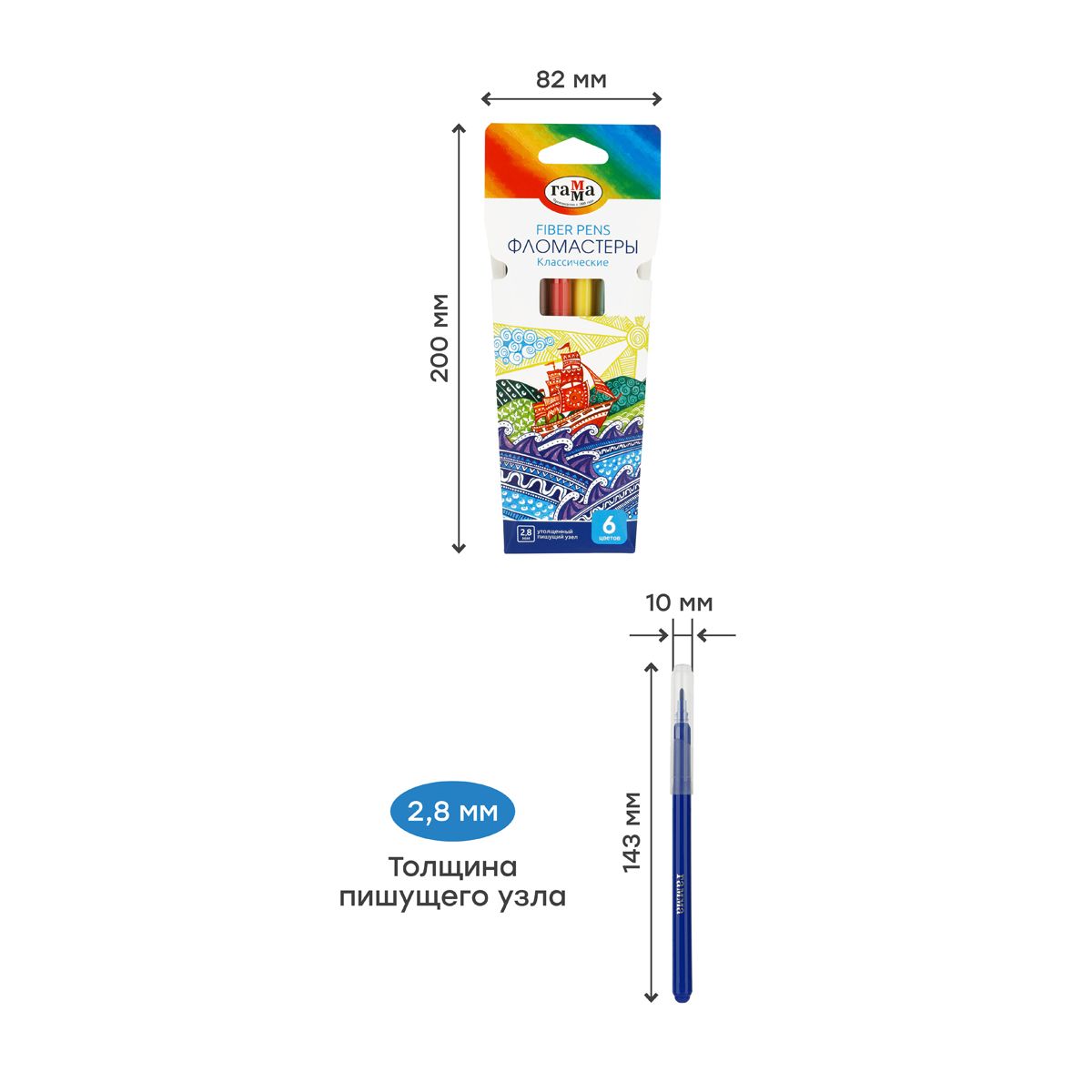 Фломастеры Гамма "Классические", 06цв., смываемые, картон. упак., европодвес