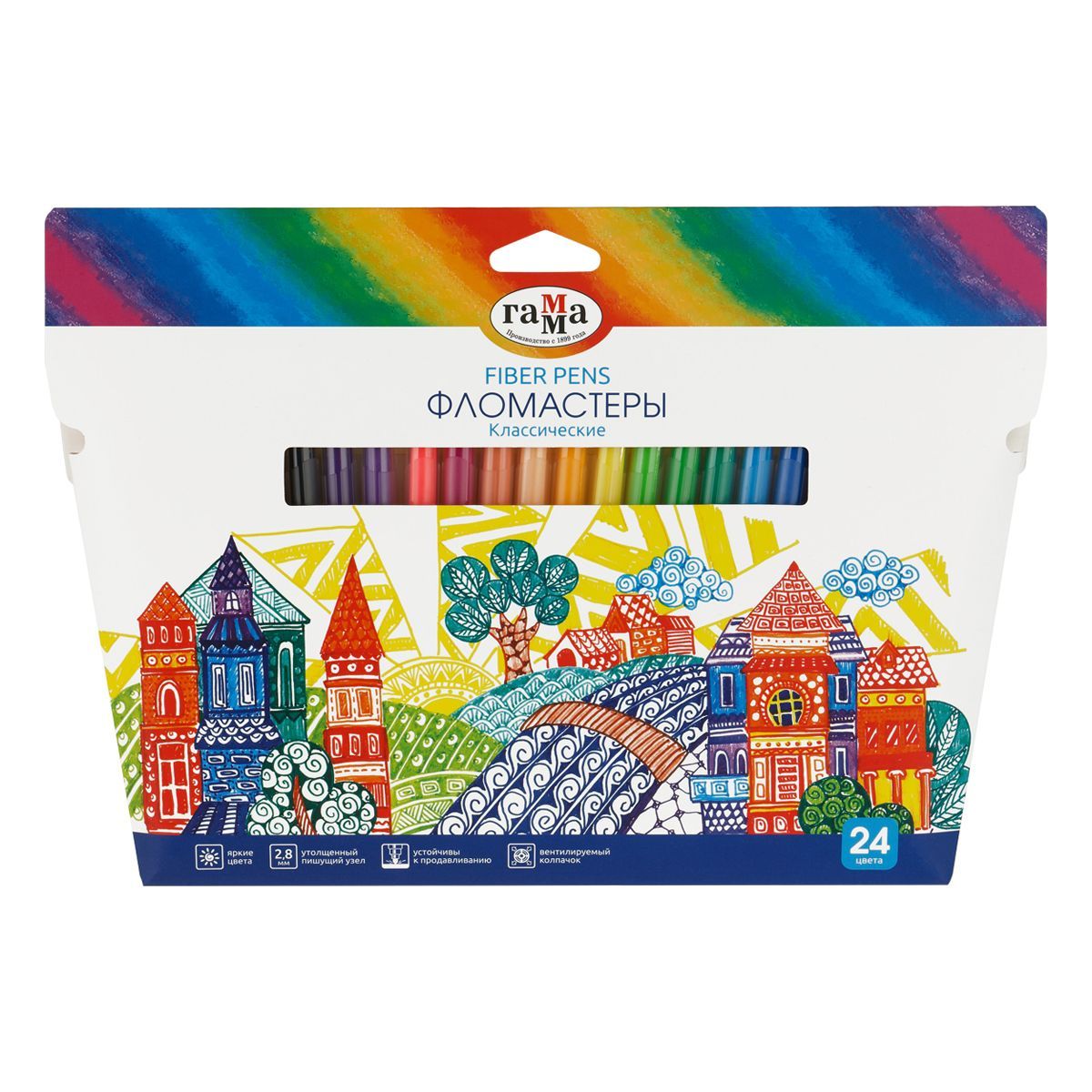 Фломастеры Гамма "Классические", 24цв., смываемые, картон. упак., европодвес